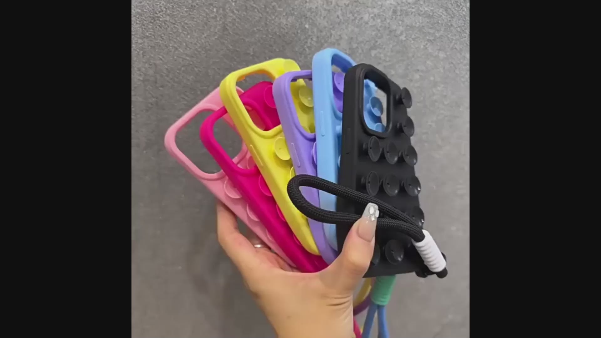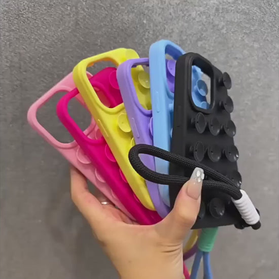 This Fashion Cute Candy Liquid Silicone Suction Cup phone case offers durable protection and a secure grip for iPhone models 11 through 17 Pro Max. Crafted from soft liquid silicone, it provides a comfortable, non-slip feel while its suction cup design enhances handling and adds a playful aesthetic. The included wrist strap ensures added security, making it easier to carry and less prone to accidental drops.