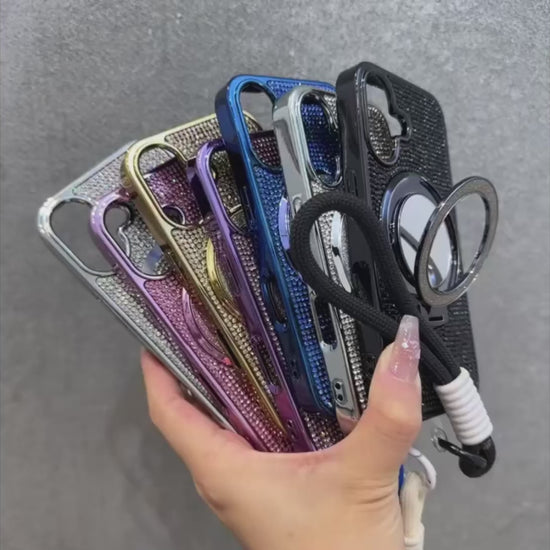 The SparkleRing BraceCase features a glitter diamond magnetic stand designed for secure, hands-free device support. Its strong magnetic base ensures stable positioning, Ideal for viewing or working on your device with ease, this stand combines functionality with refined style.