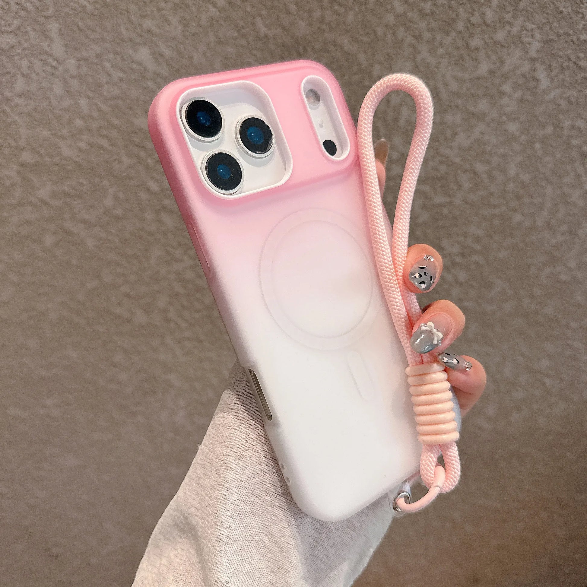 This soft silicone phone case offers expert-level protection with a shockproof design specifically crafted for iPhone models 11 through 17 Pro Max. Featuring a gradient color finish, it combines style with functionality. The case supports MagSafe compatibility and includes a wrist strap lanyard option for added security and convenience during use. Its flexible yet durable silicone material ensures a comfortable grip while safeguarding your device from drops and scratches.
